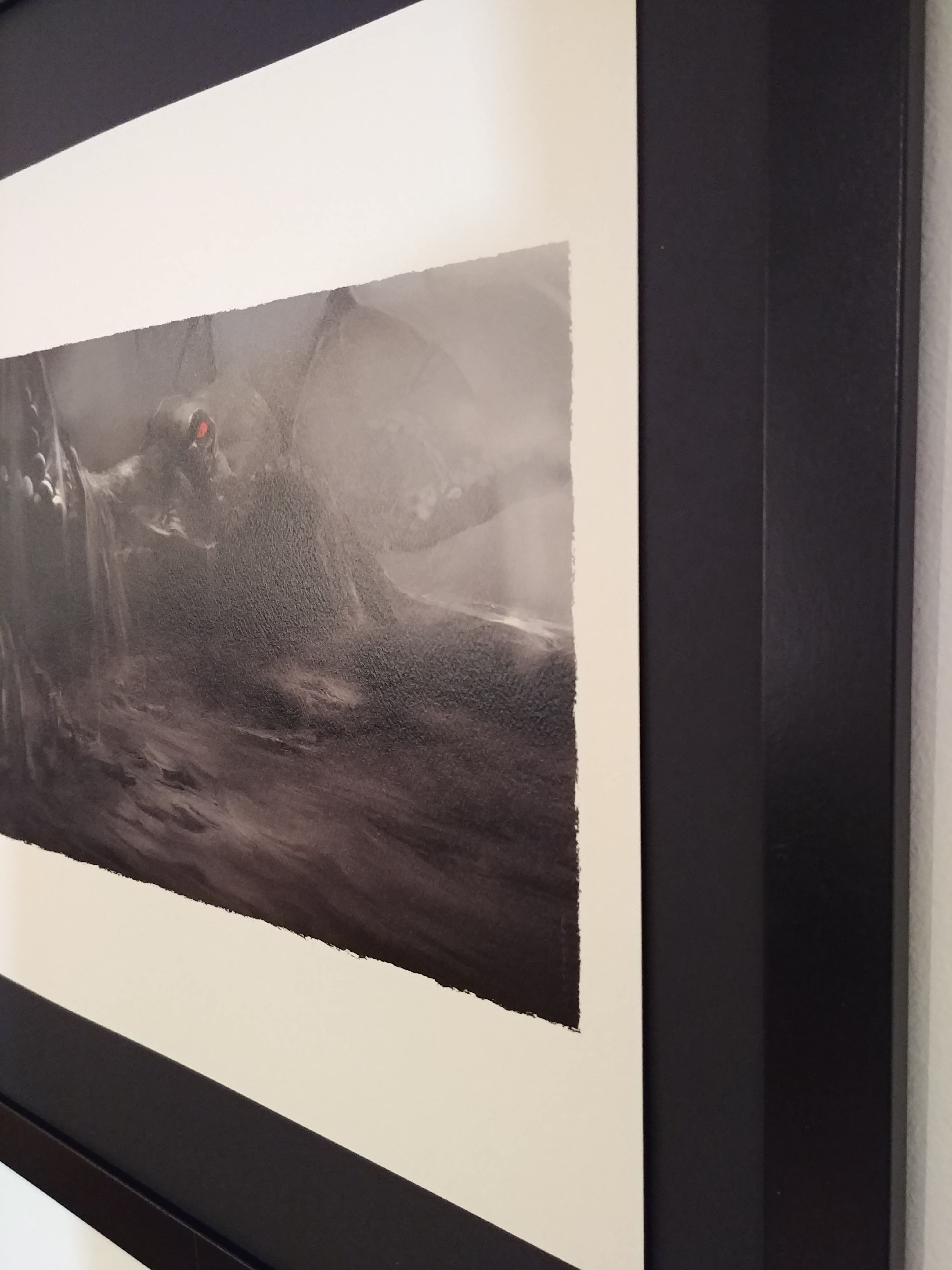This 11 x 17 piece fits comfortably into most ready-made frames. You may wish to use a mat board which are often included with the frame, and trim it to suit your artwork. Retailers such as IKEA, DeSerres, Michaels, and Amazon offer excellent frame options that complement this piece beautifully. - Did you draw this?