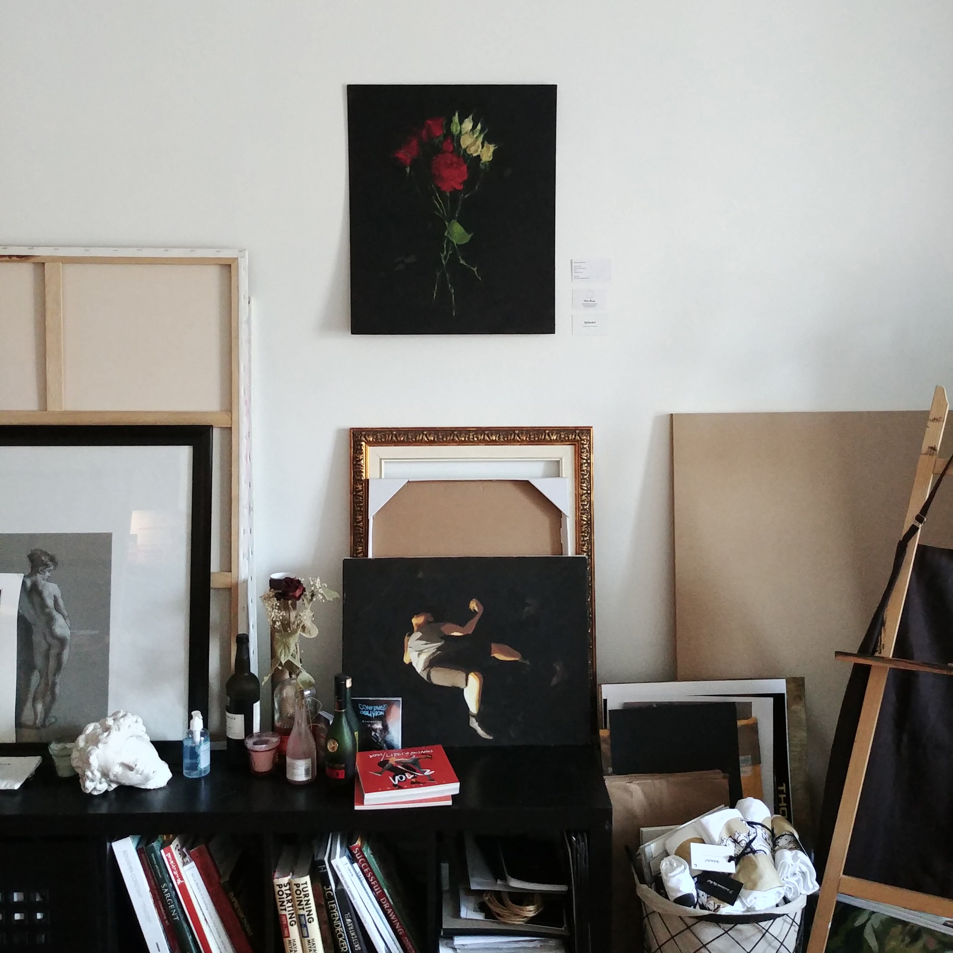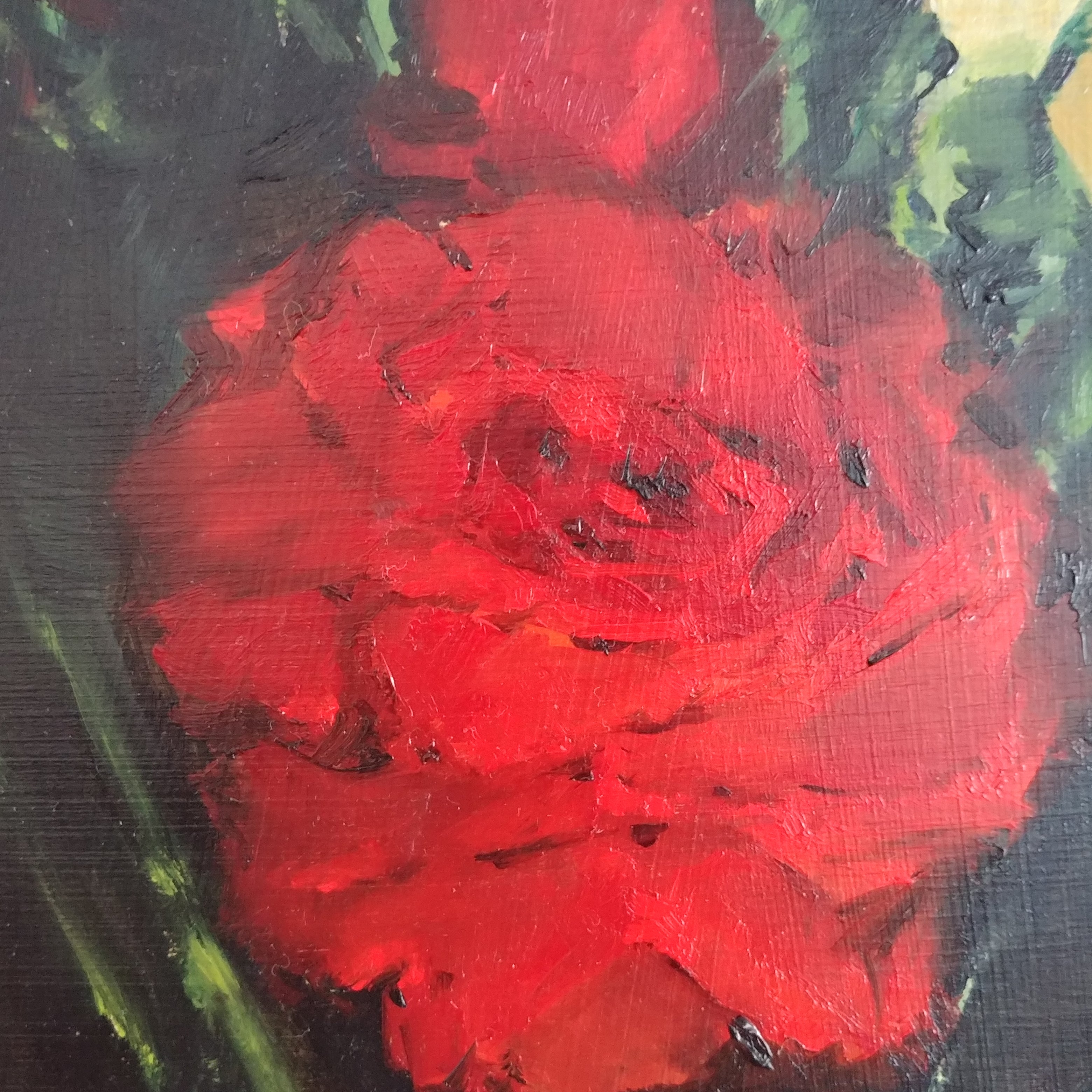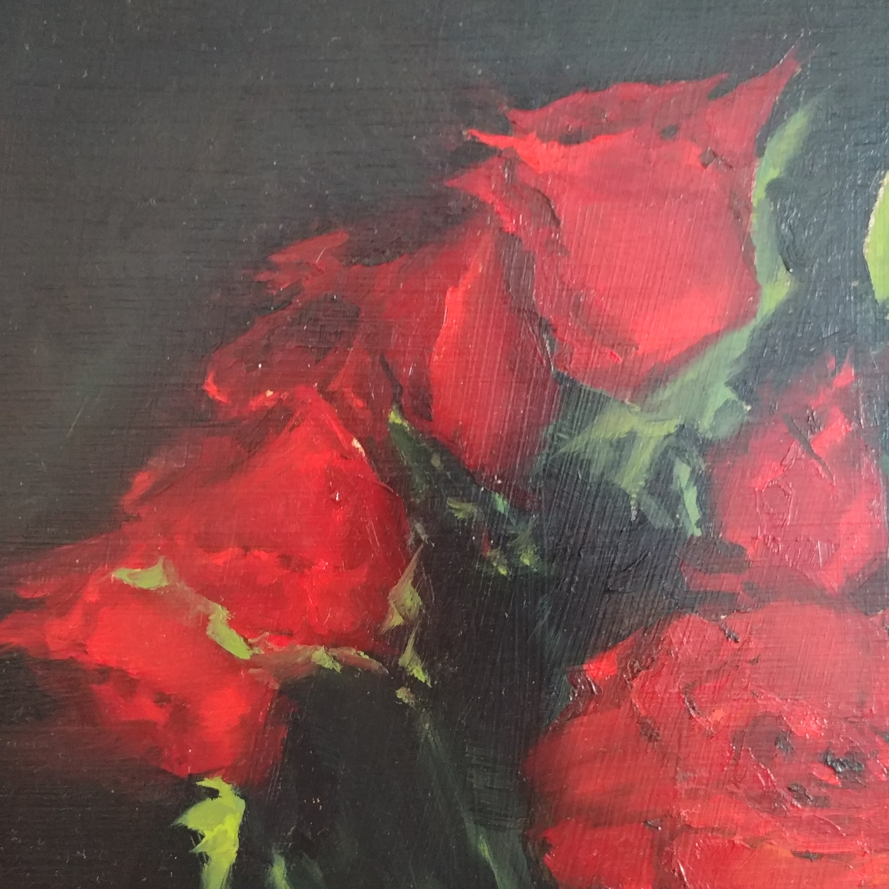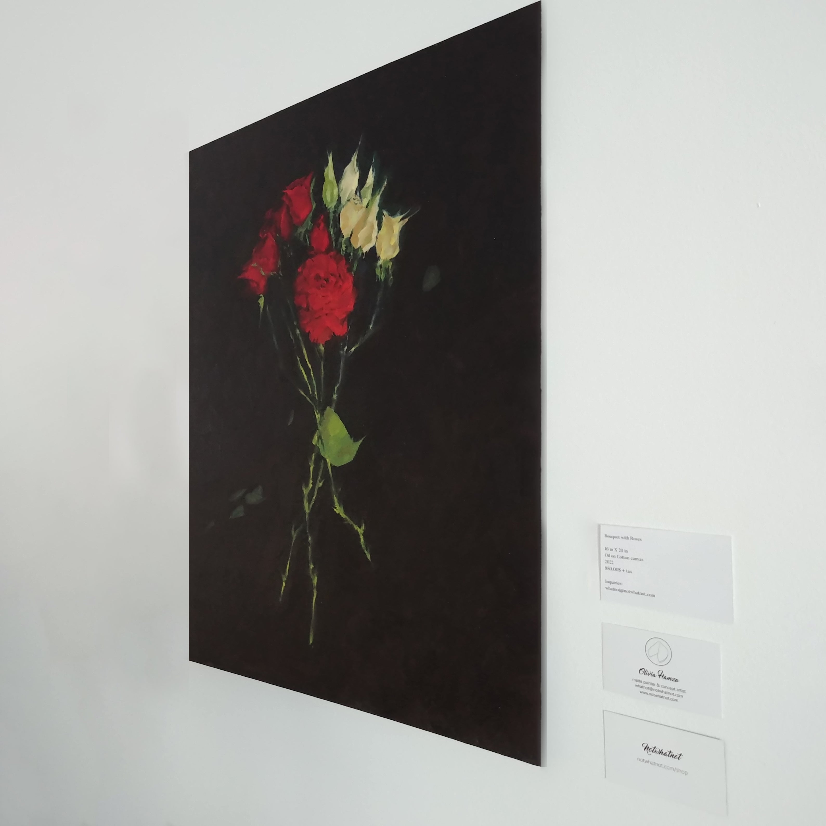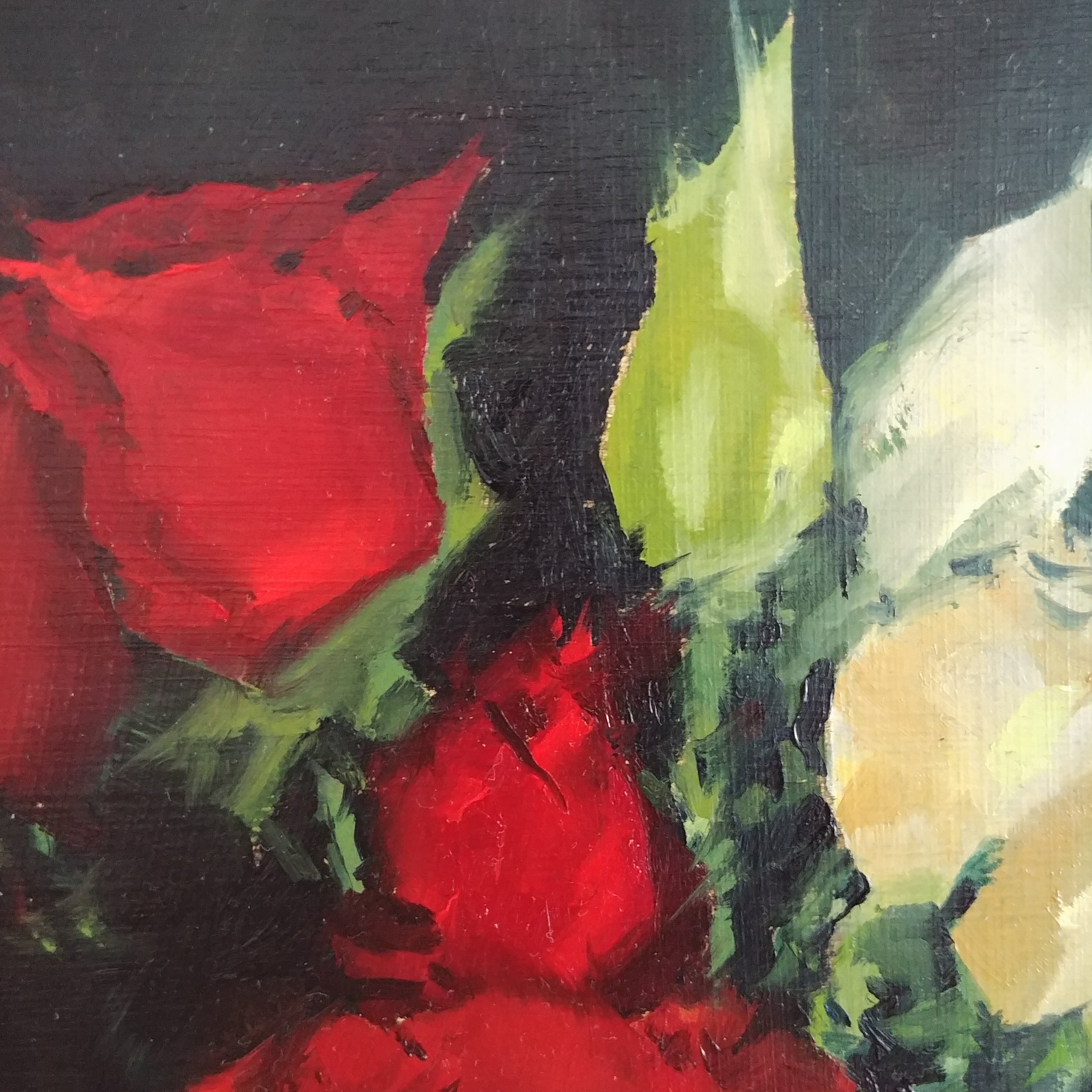 Bouquet With Roses is an original piece painted for my solo exhibition in Montreal. The exhibition examined the theme of "Study in the Arts". This particular painting was one of three still lifes painted for the show.