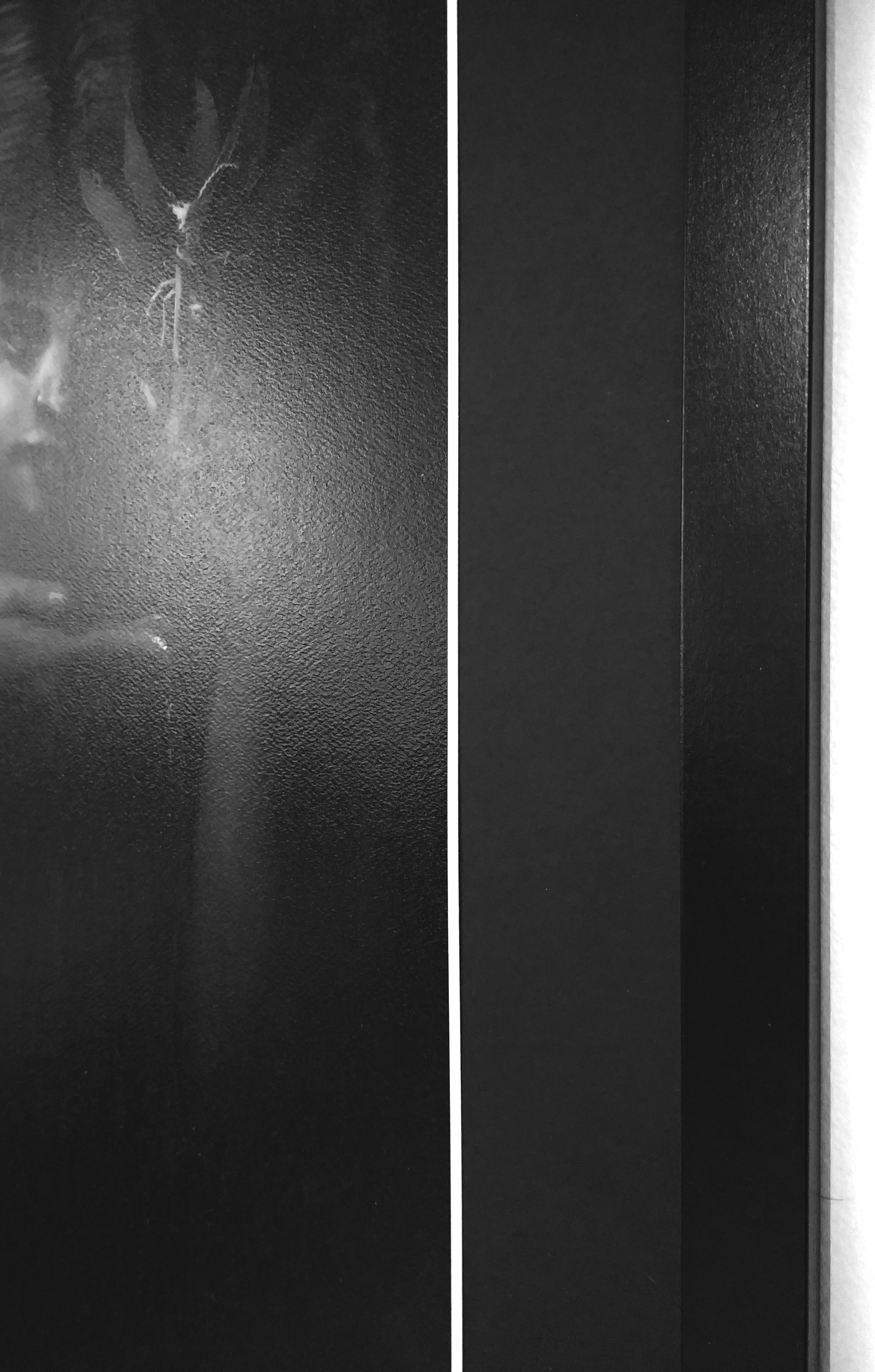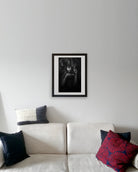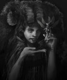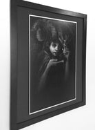 A shadowed realm where gothic fantasy and folklore entwine. This monochromatic artwork depicts a fawn-like creature, reminiscent of Pan, cradling a delicate fairy whose mischievous glint suggests she may be leading the fawn astray. Rich in Grimm-esque undertones, the scene balances innocence and danger, inviting viewers to lose themselves in a world where whimsy and darkness coexist. The delicate shadows evoke the tension of a fairy tale, capturing blind trust, curiosity, and the unpredictable pull of enchantment.