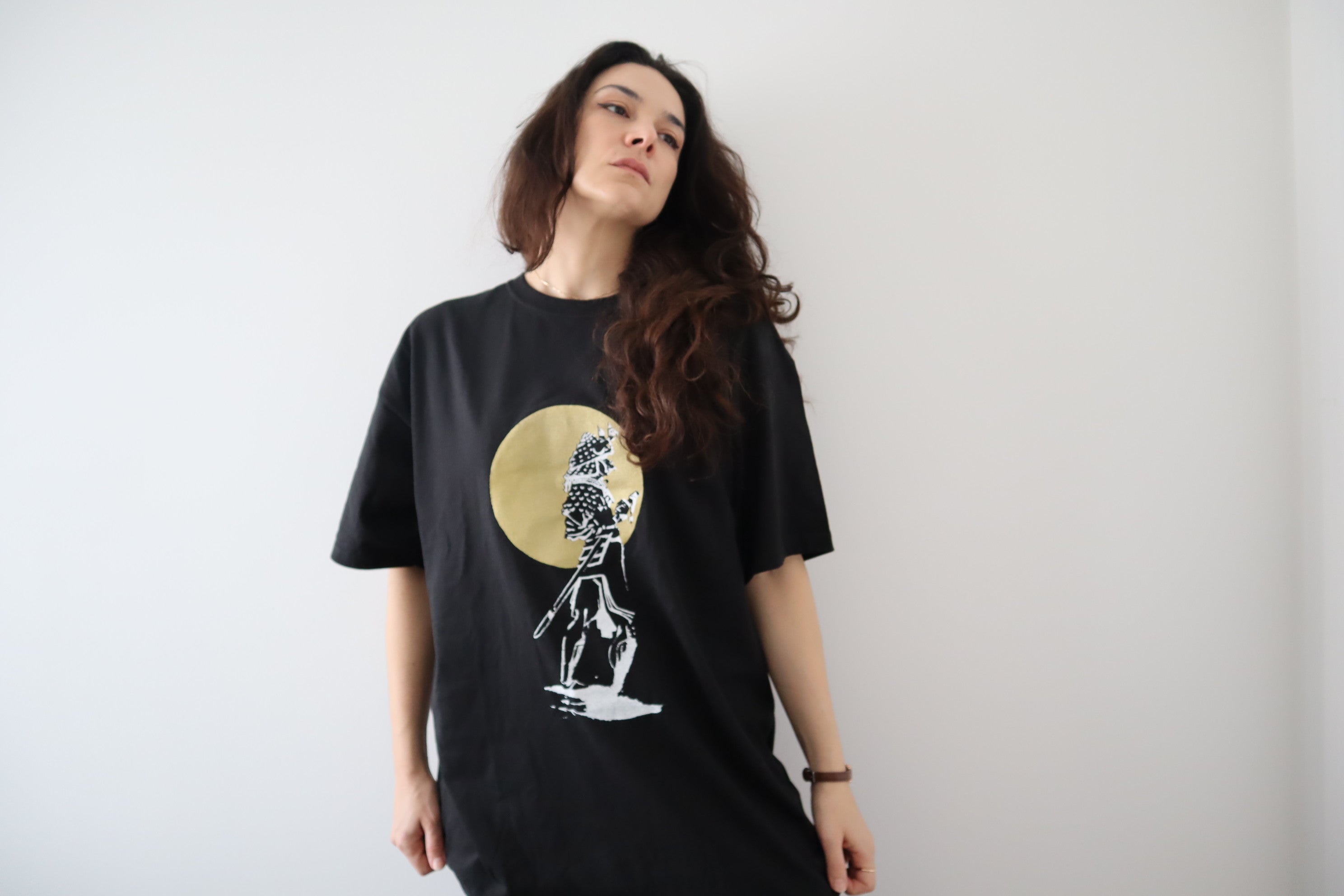 The designs are my original creations, representing simplified interpretations of more complex artworks of mine. I personally screen print the T-shirts in my home studio, using high-quality blank apparel sourced from a reputable Vancouver-based company. The shirts are pre-shrunk to guarantee an optimal fit and minimize distortion after use. Additionally, I iron-fix the paint once it has dried to ensure the longevity of the designs, allowing them to withstand years of wear.